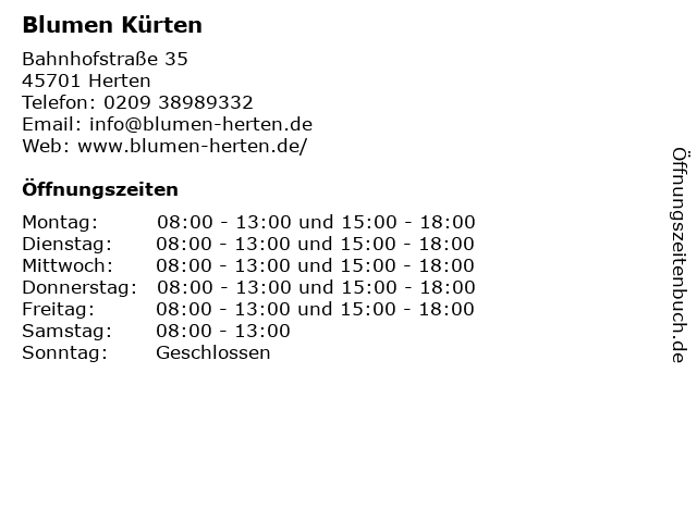 | Öffnungszeiten Blumen Kürten in Herten anzeigen | |