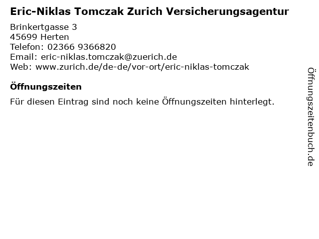 | Eric-Niklas Tomczak Zurich Versicherungsagentur anrufen | |