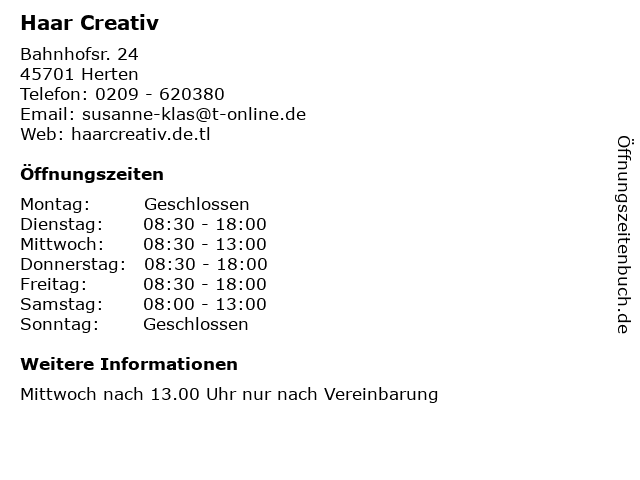 | Öffnungszeiten Haar Creativ in Herten anzeigen | |