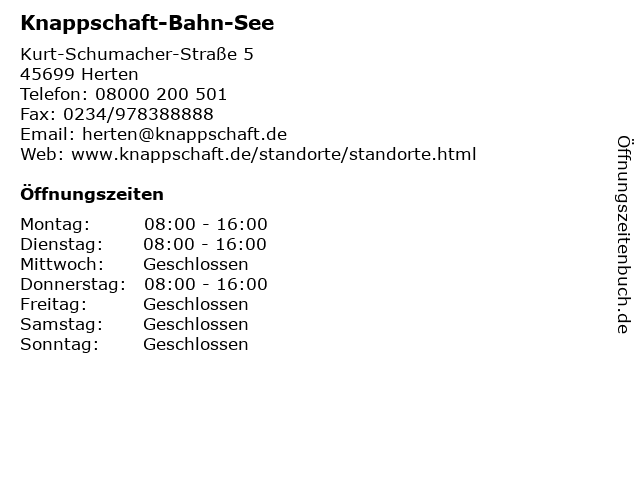| Öffnungszeiten Knappschaft-Bahn-See in Herten anzeigen | |