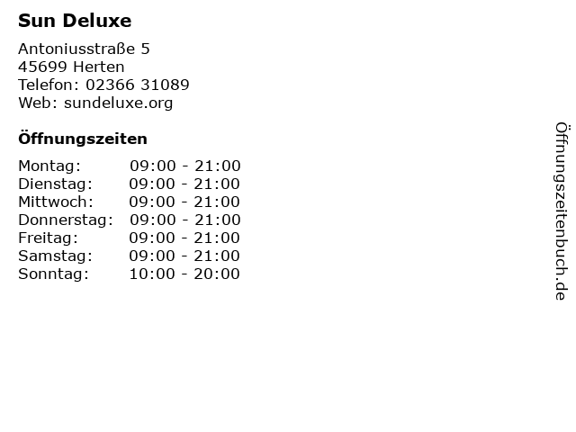 | Öffnungszeiten Sun Deluxe in Herten anzeigen | |