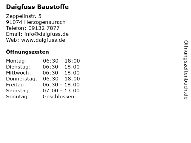 | Öffnungszeiten Daigfuss Baustoffe in Herzogenaurach anzeigen | |