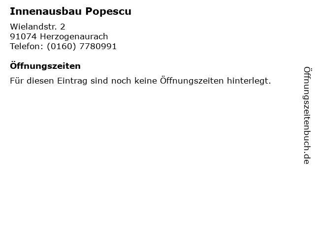 | Öffnungszeiten Innenausbau Popescu in Herzogenaurach anzeigen | |