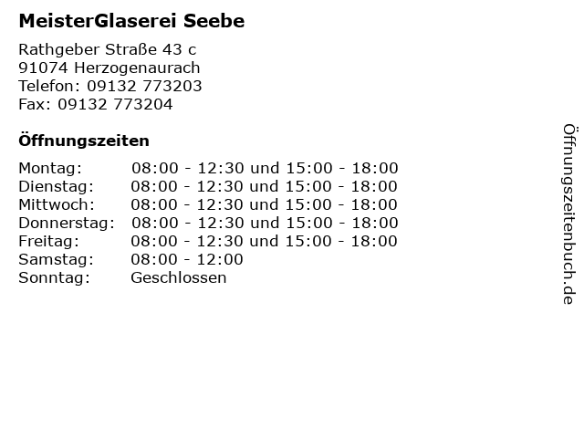 | Öffnungszeiten MeisterGlaserei Seebe in Herzogenaurach anzeigen | |