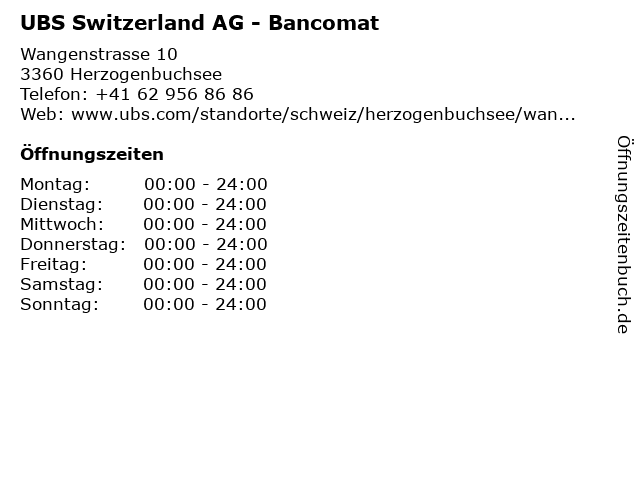 UBS Switzerland AG - Bancomat in Herzogenbuchsee: Telefonnummer, Öffnungszeiten und Adresse