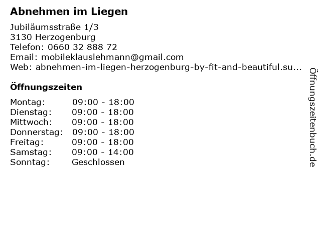 | Öffnungszeiten Abnehmen im Liegen in Herzogenburg anzeigen | |