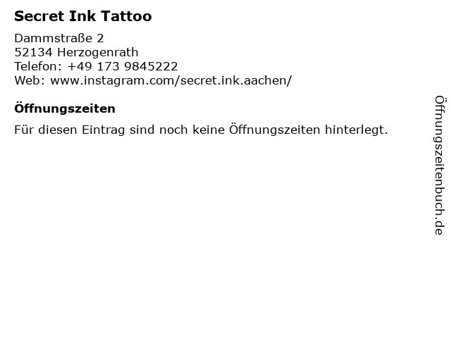 | Öffnungszeiten Secret Ink Tattoo in Herzogenrath anzeigen | |