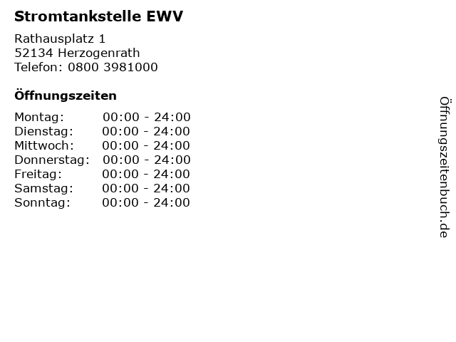 | Öffnungszeiten Stromtankstelle EWV in Herzogenrath anzeigen | |
