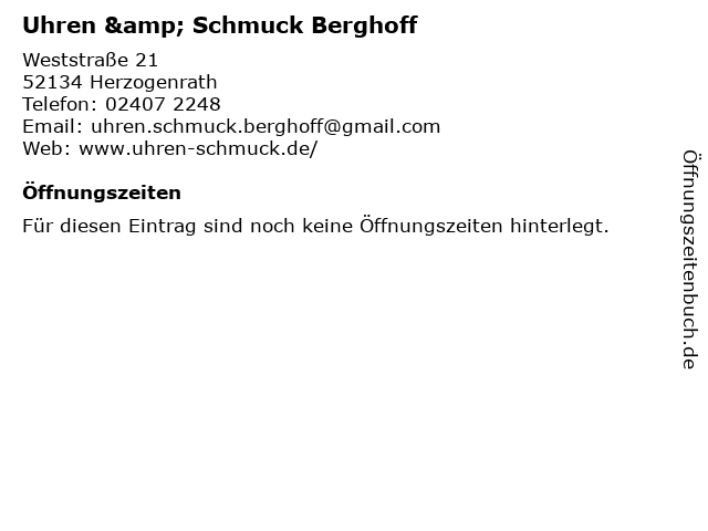| Öffnungszeiten Uhren & Schmuck Berghoff in Herzogenrath anzeigen | |