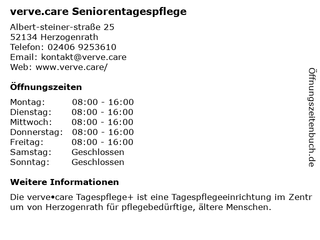 Branchen & Suchbegriffe zu verve.care Seniorentagespflege:häusliche pflege, pflegeheim, seniorentagespflege, verve.care |