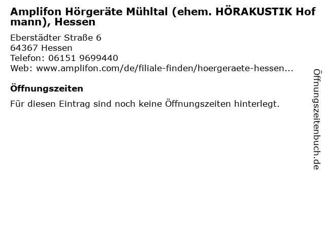 | Amplifon Hörgeräte Mühltal (ehem. HÖRAKUSTIK Hofmann), Hessen anrufen | |