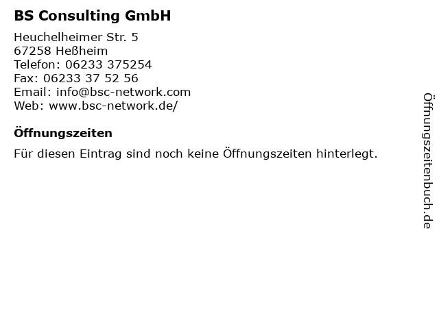 | Öffnungszeiten BS Consulting GmbH in Heßheim anzeigen | |