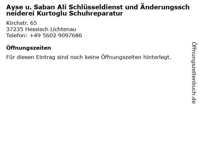 | Ayse u. Saban Ali Schlüsseldienst und Änderungsschneiderei Kurtoglu Schuhreparatur anrufen | |