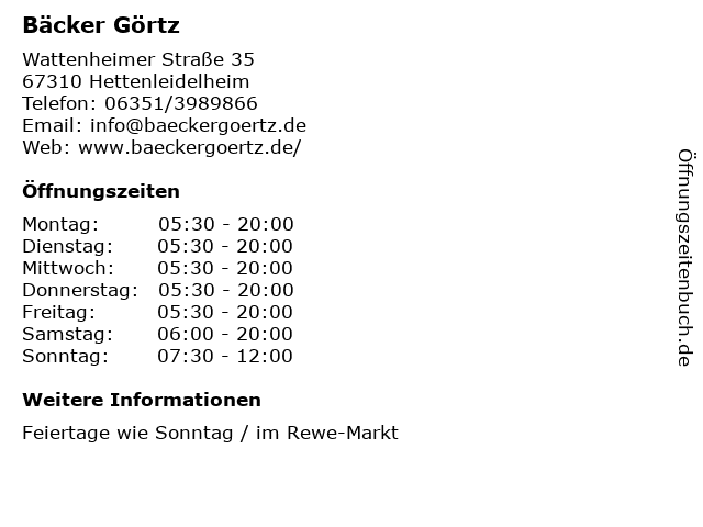 | Öffnungszeiten Bäcker Görtz in Hettenleidelheim anzeigen | |