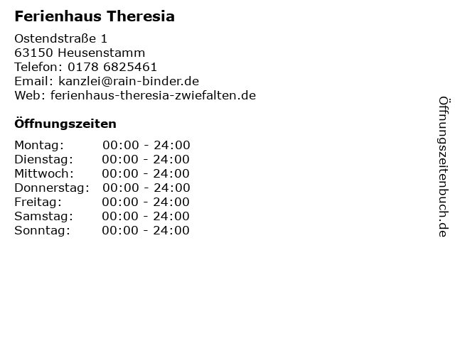 | Öffnungszeiten Ferienhaus Theresia in Heusenstamm anzeigen | |