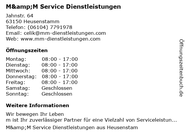 | Montag | 08:00-17:00 |