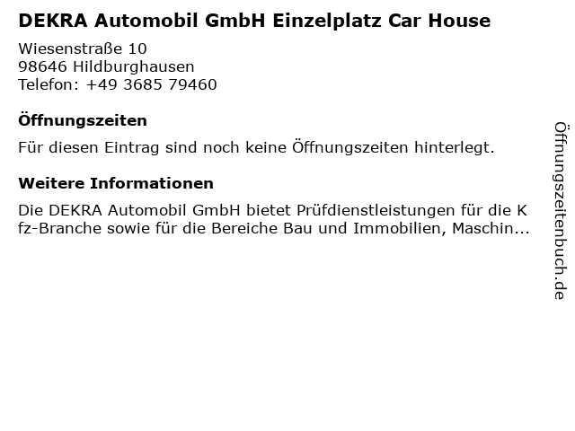 | DEKRA Automobil GmbH Einzelplatz Car House anrufen | |