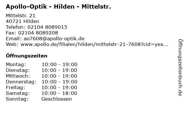 Öffnungszeiten Apollo-Optik - Hilden - Mittelstr.