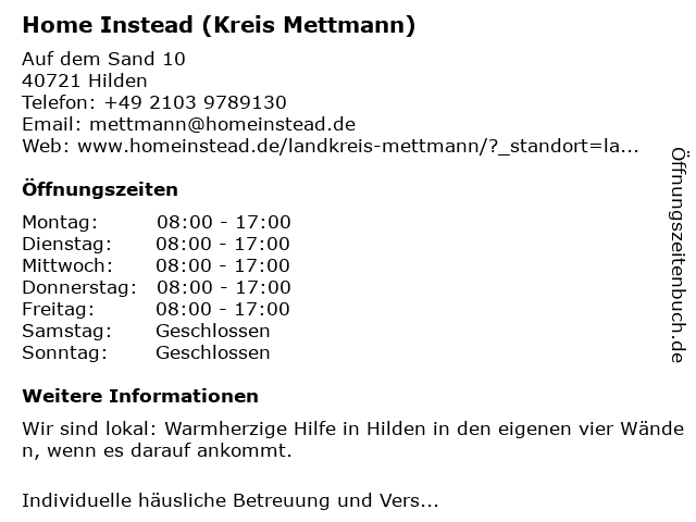 Branchen & Suchbegriffe zu Home Instead (Kreis Mettmann):alltagsbegleitung, altenpflege, ambulante pflege, begleitung im alltag, begleitung zu arztbesuchen, betreuung zuhause und außer haus, betreuungskraft gesucht, demenzbetreuung, entlastung pflegender angehöriger, familienbetreuung, hilfe bei der grundpflege, hilfe beim einkauf, hilfe im haushalt, home, häusliche pflege, häuslicher pflegedienst, instead, kreis, pflegende angehörige, seniorenbetreuung, seniorenpflege, unterstützung im alltag, verhinderungspflege |