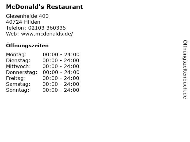 | Öffnungszeiten McDonald's Restaurant in Hilden anzeigen | |
