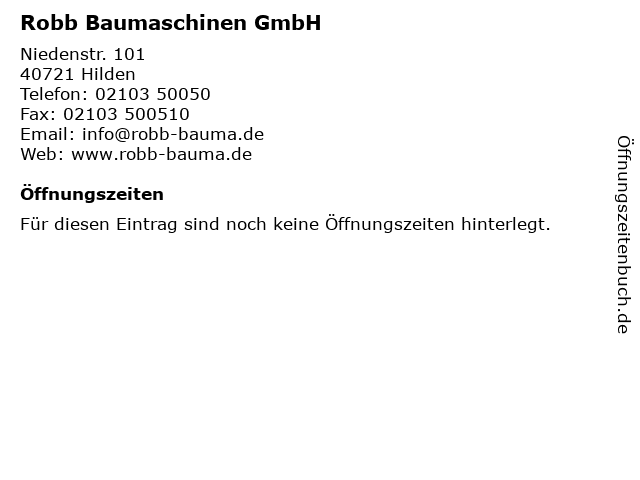 | Öffnungszeiten Robb Baumaschinen GmbH in Hilden anzeigen | |