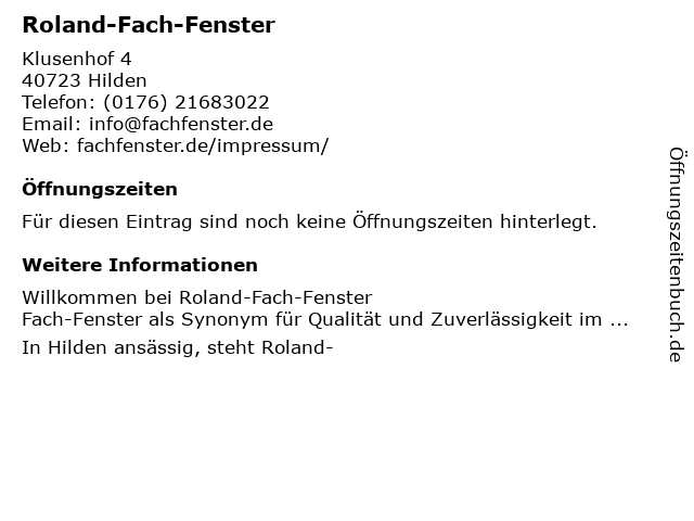 | Öffnungszeiten Roland-Fach-Fenster in Hilden anzeigen | |