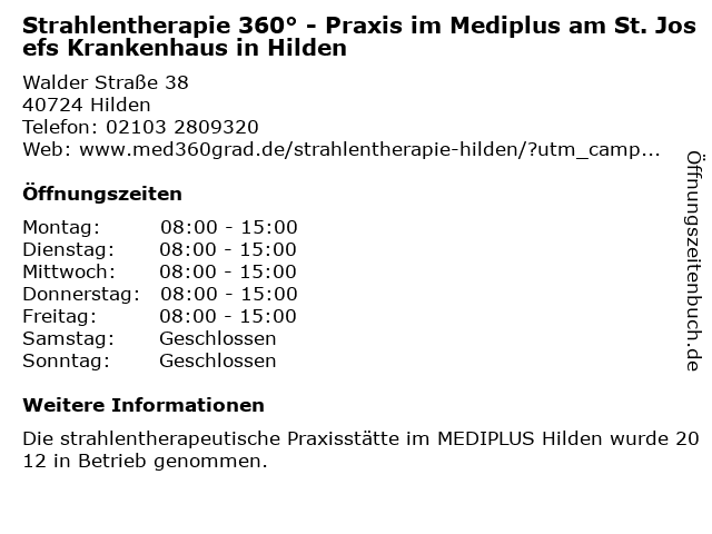 Branchen & Suchbegriffe zu Strahlentherapie 360° - Praxis im Mediplus am St. Josefs Krankenhaus in Hilden:360°, josefs, krankenhaus, mediplus, praxis, strahlentherapie |