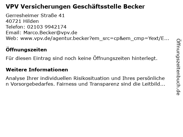 | VPV Versicherungen Geschäftsstelle Becker anrufen | |