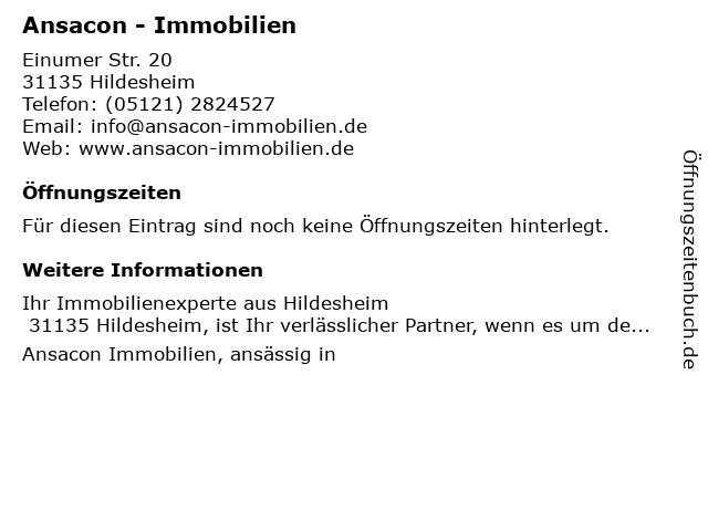 | Öffnungszeiten Ansacon - Immobilien in Hildesheim anzeigen | |