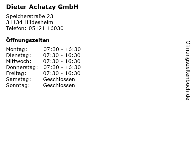 | Öffnungszeiten Dieter Achatzy GmbH in Hildesheim anzeigen | |