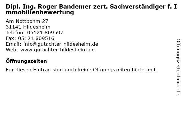 | Dipl. Ing. Roger Bandemer zert. Sachverständiger f. Immobilienbewertung anrufen | |