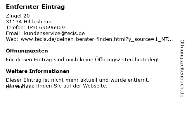 | Öffnungszeiten Entfernter Eintrag in Hildesheim anzeigen | |