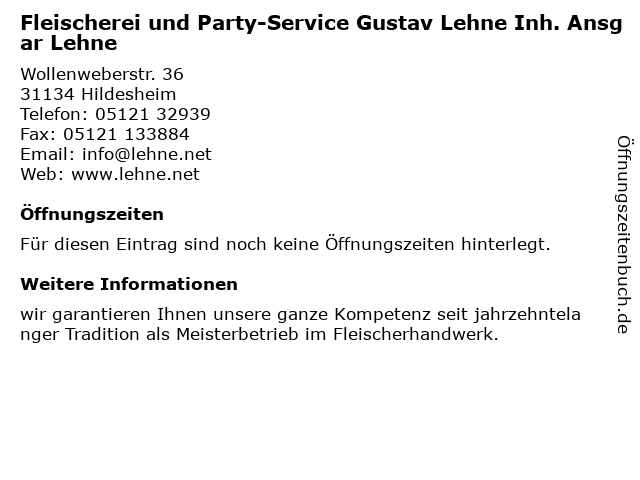 | Fleischerei und Party-Service Gustav Lehne Inh. Ansgar Lehne anrufen | |