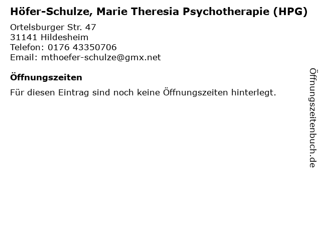 | Höfer-Schulze, Marie Theresia Psychotherapie (HPG) anrufen | |