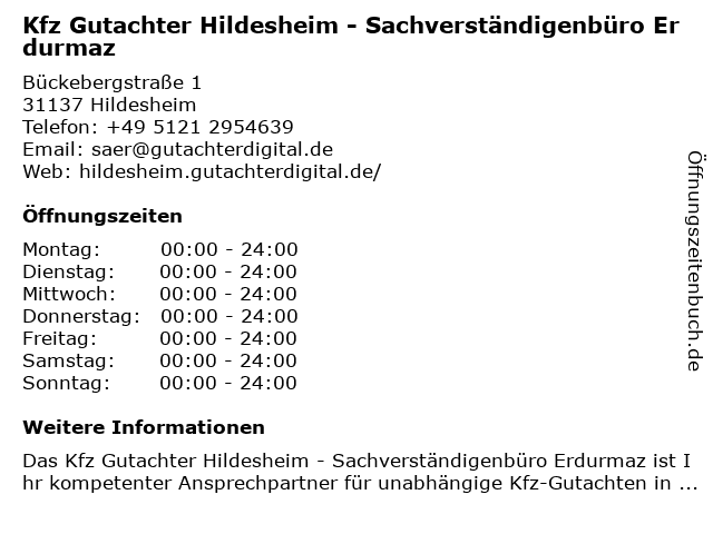 4 Sachverständigenbüro Dipl. Ing. Roger Bandemer (Entfernung: 5,39 km) Am Nottbohm 27, 31141 Hildesheim 6 |