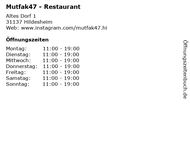 | Öffnungszeiten Mutfak47 - Restaurant in Hildesheim anzeigen | |