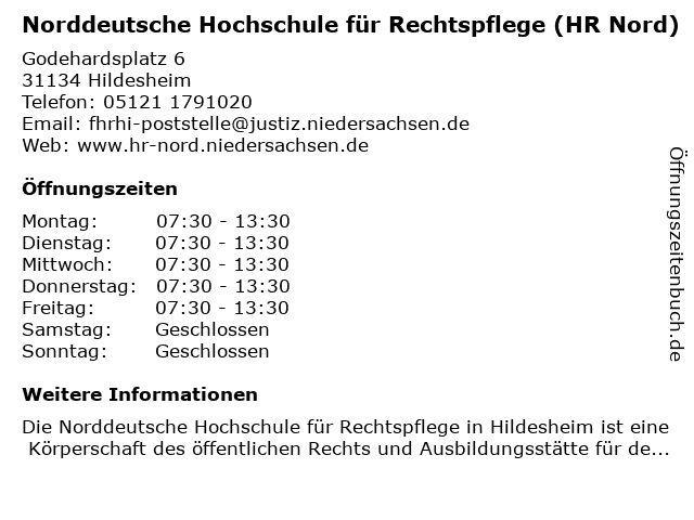 Branchen & Suchbegriffe zu Norddeutsche Hochschule für Rechtspflege (HR Nord):hochschule, hr, nord, norddeutsche, rechtspflege |