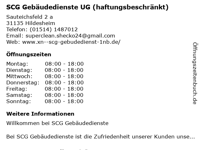 Branchen & Suchbegriffe zu SCG Gebäudedienste UG (haftungsbeschränkt):(haftungsbeschränkt), altenheimreinigung, arztpraxisreinigung, bauabschlussreinigungen, baugrobreinigung, büroraumreinigung, desinfektionen, endreinigung, eventreinigung, fensterputzer, fensterreinigung, gebäudedienste, gebäudeservice, geschäftsreinigung, haftungsbeschränkt, reinigungsfirma, reinigungsunternehmen, scg, treppenhausreinigung, ug, unterhaltsreinigung |