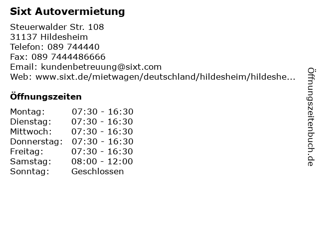 Öffnungszeiten Sixt Autovermietung in Hildesheim anzeigen | |