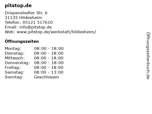 | Öffnungszeiten pitstop.de in Hildesheim anzeigen | |