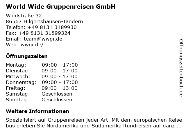 Branchen & Suchbegriffe zu World Wide Gruppenreisen GmbH:afrika, amerika, asien, busrundreisen, gruppenreisen, nordamerika, paketer, paketreiseveranstalter, reiseveranstalter, südamerika, wide, world |