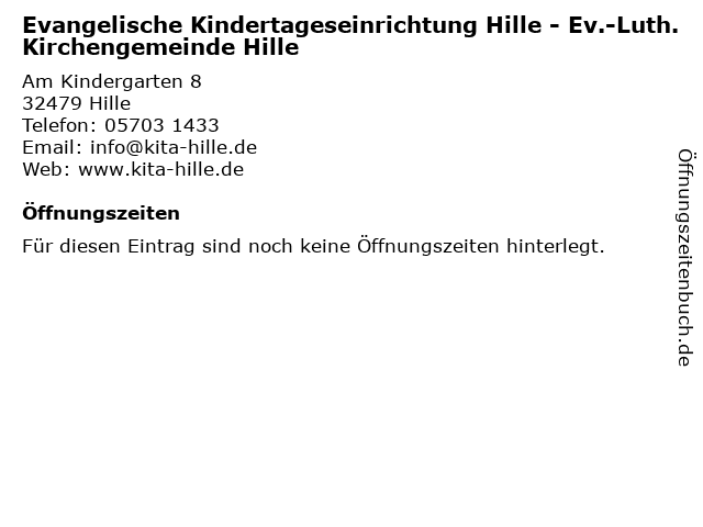 | Evangelische Kindertageseinrichtung Hille - Ev.-Luth. Kirchengemeinde Hille anrufen | |