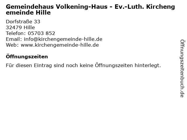 | Gemeindehaus Volkening-Haus - Ev.-Luth. Kirchengemeinde Hille anrufen | |