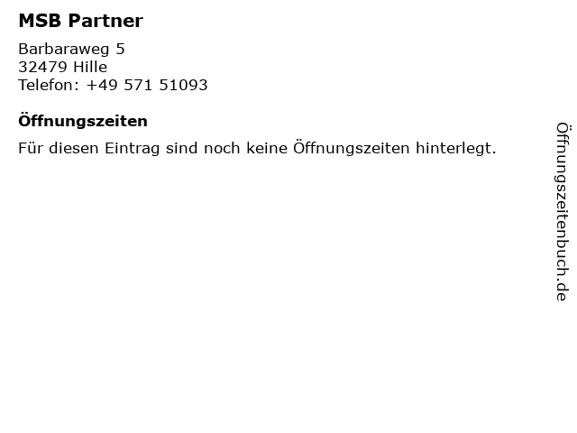 | Öffnungszeiten MSB Partner in Hille anzeigen | |