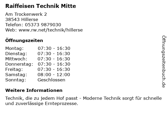 | Öffnungszeiten Raiffeisen Technik Mitte in Hillerse anzeigen | |