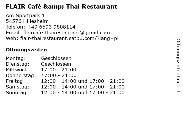 Branchen & Suchbegriffe zu FLAIR Café & Thai Restaurant:café, café&thai, flair, restaurant, thai, thailändisches restaurant |
