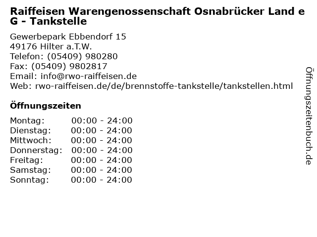 1 Raiffeisen Warengenossenschaft Osnabrücker Land eG - Tankstelle (Entfernung: 8,12 km) Bahnhofstr. 28 C, 49143 Bissendorf 2 Raiffeisen Warengenossenschaft Osnabrücker Land eG - Tankstelle (Entfernung: 18,53 km) Im Felde 1, 49152 Bad Essen 3 Raiffeisen Ebbendorf (Entfernung: 0,10 km) Gewerbepark Ebbendorf 15, 49176 Hilter am Teutoburger Wald 6 Raiffeisen-Warengenossenschaft Teuto-Süd eG Landwirtschaftlicher Bedarf (Entfernung: 9,23 km) Am Bahnhof 4, 49186 Bad Iburg |