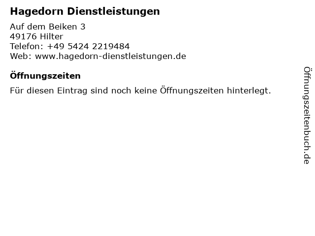 | Öffnungszeiten Hagedorn Dienstleistungen in Hilter anzeigen | |