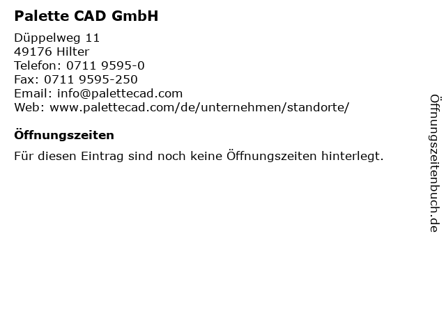 | Öffnungszeiten Palette CAD GmbH in Hilter anzeigen | |