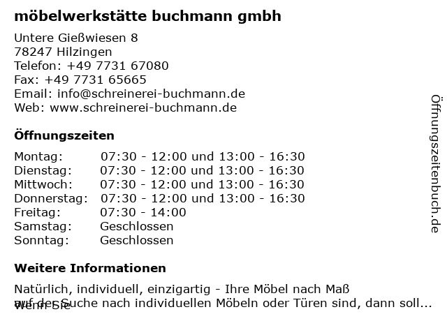 1 Homburger Schreinerei Möbelwerkstätte seit 1934 Schreinerei (Entfernung: 0,24 km) Obere Gießwiesen 7, 78247 Hilzingen 6 |